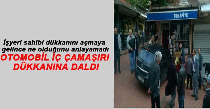 Sabah saatlerinde Yukarı Çarşı’da el frenini çekilmeden park halinde duran otomobil iç çamaşırı dükkana girdi. İşyeri sahibi Muhabbet Şahiner büyük şaşkınlık yaşarken, olayda can kaybı olmaması sevindirdi.