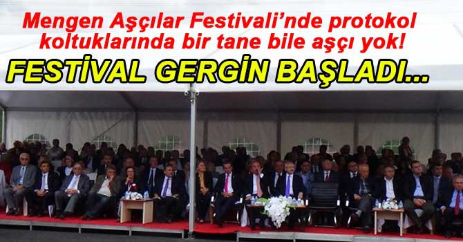 30. Mengen Uluslararası Aşçılık ve Turizm Festivali CHP Genel Başkanı Kemal Kılıçdaroğlu’nun katılımıyla başladı. Ancak açılış töreninde gergin dakikalar yaşandı. Konuşmasını yapan Türkiye Aşçılar Federasyonu Başkanı Zeki Açıköz konuşmasını uzatınca karşılıklı atışmalar yaşandı. Mengen Belediye Başkanı Turhan Bulut, protokolde oturduğu yerden ayağa kalkarak Açıköz’e saatini gösterdi.