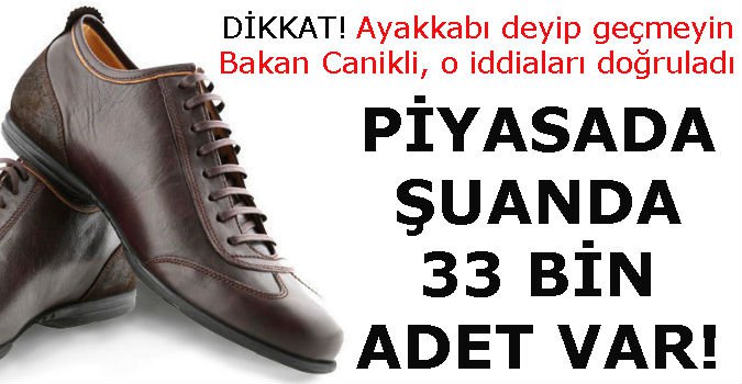 Gümrük ve Ticaret Bakanı Nurettin Canikli piyasaya binlerce zehirli ayakkabı sürüldüğü iddialarını doğruladı. Canikli, “Maalesef bu eşya iç piyasaya satılmış görünüyor. Ne kadarı piyasaya sürüldü ona bilemiyoruz” dedi.