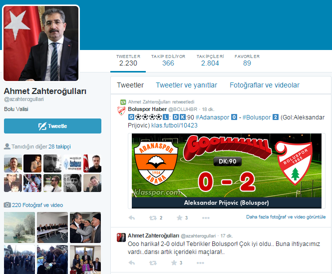 İşte o twit; “Ooo harika! 2-0 oldu! Tebrikler Boluspor! Çok iyi oldu.. Buna ihtiyacımız vardı..darısı artık içerideki maçlara!..”