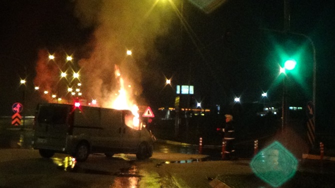 Edinilen bilgiye göre, kaza saat 01:45’de D-100 karayolu Abant Kavşağı’nda meydana geldi. Bolu’dan Düzce istikametine giden sürücüsünün kimliği belirlenemeyen 14 DY 882 plakalı minibüs, İstanbul’dan Trabzon istikametine giden ve Abant Kavşağı’ndan otoyola girmek isteyen Engin Gedikli yönetimindeki 61 S 0677 plakalı yolcu otobüsüne çarptı. Kaza sonrasında minibüs alev alev yanmaya başladı. Dakikalarca yanan minibüse yangın söndürme tüpleri ile müdahale edildi. Alevler kontrol altına alınamadı. İtfaiye ekipleri alevlere kısa sürede müdahale etti. Minibüsün ön kısmı kullanılamaz hale geldi. Polis ekipleri kazayla ilgili inceleme başlattı.