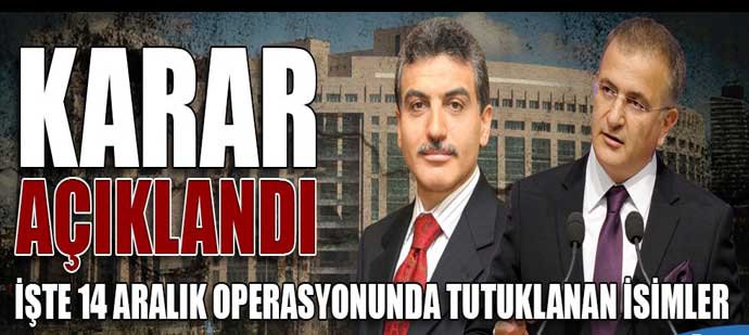 14 Aralık operasyonunda gözaltına alınan Zaman gazetesi Genel Yayın Yönetmeni Ekrem Dumanlı ve Samanyolu Televizyonu Yayın Grup Başkanı Hidayet Karaca’nın da aralarında bulunduğu 12 kişi hakkında karar açıklandı.