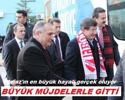 Bolu Belediye Başkanı Alaaddin Yılmaz, AK Parti İl Kongresi’ne gelen Başbakan Ahmet Davutoğlu’na bir dosya verdi. Dosyanın içinde hayata geçirilmesi planlanan birbirinden önemli projeleri yer aldı. Başbakan Davutoğlu, Güney Çevre Yolu Projesi ile ilgili müjdeyi verdi. Güney Çevre Yolu Projesi Başkan Yılmaz'ın en büyük hayali. Proje ile D-100 karayolu güneye taşınacak...
