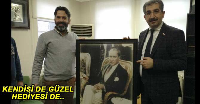 Bolu Valisi Ahmet Zahteroğulları, Bolu Gazeteciler Cemiyeti'ni (BGC) ziyaret etti. Vali, BGC Başkanı Bülent Velioğlu’na BGC Sosyal Tesisleri'nde kullanılması için Atatürk tablosu hediye etti.