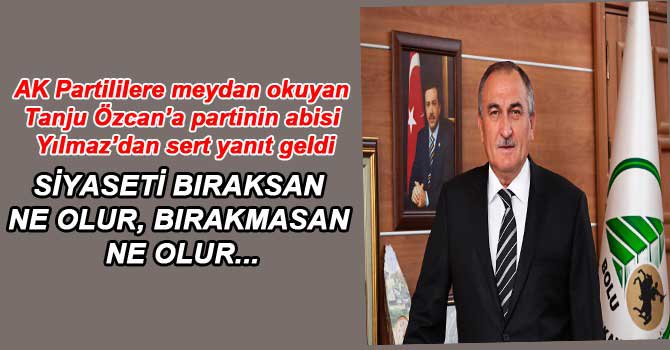 CHP Bolu Milletvekili Tanju Özcan’ın Bolu Gazeteciler Cemiyeti Yeni Yıl Gazetesi’ne verdiği röportajda, “Haziran ayında AKP 3-0’ı unutsun. 3-0 olursa siyaseti bırakırım” ifadelerine yanıt verdi. Yılmaz, “Bir insanın siyaseti bırakması, devam etmesi önemli değil. Siyaset hizmet için önemlidir. Siyasetle uğraşanda siyaset ettikleri ille ilgili elle tutulur, gözle görülür bir yapıları var mıdır? Yoksa siyaseti bıraksa ne yazar bırakmasa ne yazar. Siyasetle uğraşanlar, il başkanı olmak isteyenler, belediye başkanı olmak isteyenler olabilirler. Herkes kendisi için bunları ister. Biz Bolu için bunları isteyenleri arıyoruz. Bugüne kadar Bolu için siyaset yapanların Boluyla ilgili hedefi olup ta diktikleri bir ağaç var mı? Ben şunu yaptım bunu yaptım diyebilecekleri durumdalar mı? Eğer değillerse siyasetle uğraşsalar ne yazar uğraşmasalar ne yazar! Sadece seçilirler maaşları ve milletvekilliği forsundan yararlanırlar. Bunlar kendileri için önemlidir. Ama siyasetin asıl amacı siyaset yaptıkları ille ilgili önemli diye nitelendirilecek çalışmalardan geçer. 20 yıl sonra Tanju bey hatırlanır mı? Siz kalıcı bir iz bırakırsanız hatırlanırsınız. İz bırakmadıktan sonra siyasete devam etsen ne yazar etmesen ne yazar” diye konuştu.