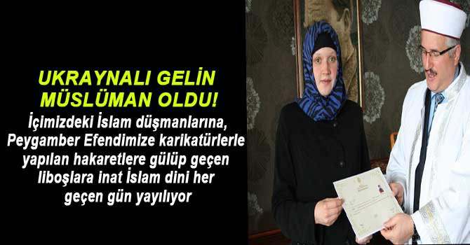 Geredeli Süleyman Karaman ile evli olan Ukraynalı Anastasıa Homzıakova, eşinin dini inançlarından etkilenerek önceki gün Müslüman oldu.