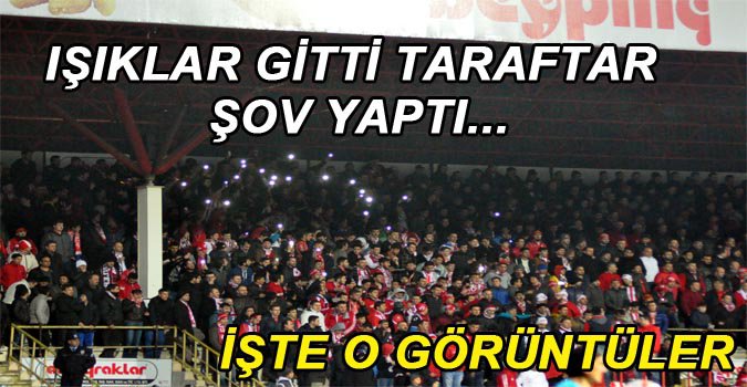 Boluspor evinde Samsunspor'u ağırladığı karşılaşmanın 65. dakikasında Bolu Atatürk Stadyumun ışıkları kesildi. Karşılaşmanın hakemi Alper Ulusoy maça ara verirken taraftarlar bu arada görsel şovla izleyenleri kendine hayran bıraktı.
