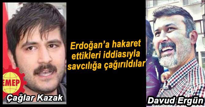 Davut Ergün ve Çağlar Kazak Twitter’da Cumhurbaşkanı Recep Tayyip Erdoğan için yazdıkları tweetler nedeniyle savcılık tarafından ifadeleri alınması için adliyeye çağırıldı.