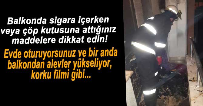 Sağlık Mahallesi’nde bir evin balkonunda çıkan yangın paniğe neden oldu. Ev sahibi aile büyük korku yaşarken, alevlerin balkondan eve sıçraması itfaiye ekipleri tarafından son anda önlendi. Yangına sigara izmaritinin sebep olduğu ifade edildi.
