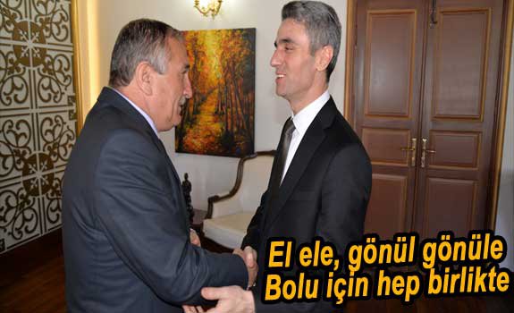 Bolu Valisi Aydın Baruş, Bolu Belediye Başkanı Alaaddin Yılmaz, Başkan Yardımcısı İhsan Ağcan ve beraberindeki heyeti makamında ağırladı. Bolu Valiliğine atanmasından dolayı Vali Baruş’utebrik eden Belediye Başkanı Alaaddin Yılmaz, yeni görevinde başarılar diledi. Ziyarete gelen Başkan Yılmaz ve beraberindeki heyete teşekkür eden Vali Baruş“Bolu’da görev yapmaktan ve bu güzel şehrin bir ferdi olmaktan dolayı son derece mutluyum. İnşallah Belediye Başkanımızla birlikte İlimizi hak ettiği seviyeye kavuşturmak için çalışacağız” dedi.