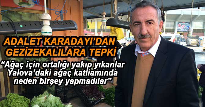 AK Parti Bolu Milletvekili aday adayı Adalet Karadayı, “Ağaçları bahane ederek Gezi Parkı olayları nedeniyle ülkemiz milyarlarca lira zarara uğradı. Ama bu insanlar Yalova’da ağaç katliamını görmezden geldiler. Yalova’daki ağaç katliamında neden kimsenin sesi çıkmadı” dedi.