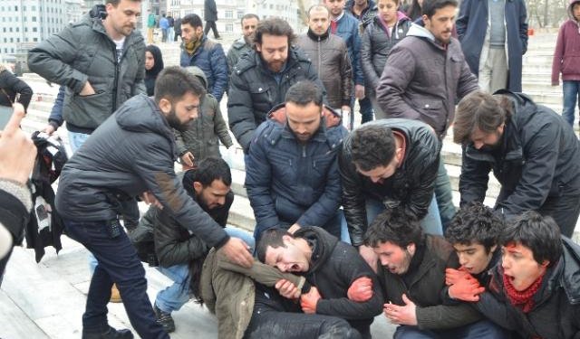 Gezi Parkı merdivenlerine kırmızı boya döküp “Berkin burada” yazılı pankart açan liseli gençlerle polis arasında arbede yaşandı. Arbede sırasında eylemcilerin bazıları merdivenlerden yuvarlanırken, 8 kişi gözaltına alındı.