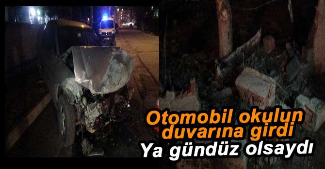 Borazanlar Mahallesi’nde seyir halindeyken kontrolden çıkan araç son sürat lisenin duvarına çarptı. Duvar yerle bir olurken, araç sürücüsü yaralandı.