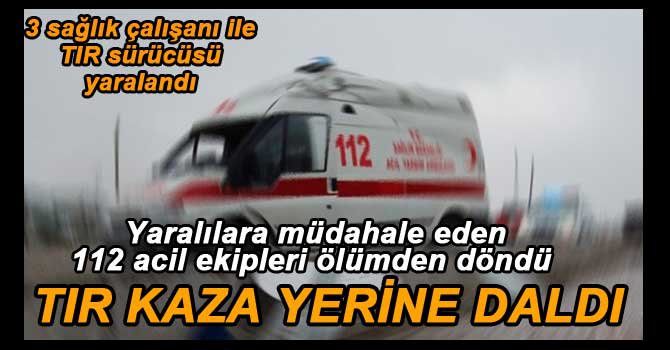 TEM Otoyolu’nda meydana gelen kazaya müdahale eden 112 sağlık ekibine, kaza yerine hızla dalan bir TIR çarptı. Olay yerinde can pazarı yaşanırken 4 kişi yaralandı.