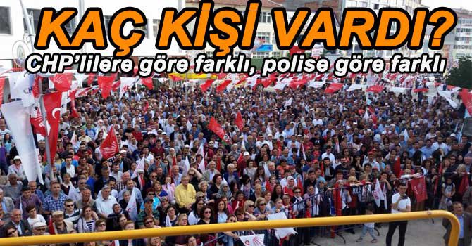 CHP Yalova Milletvekili Muharrem İnce, milletvekili adaylarına destek olmak için geldiği Bolu’da İzzet Baysal heykeli önünde halka seslenirken, her miting sonrasında tartışılan “Mitingde kaç kişi vardı?” polemiği yeniden başladı. CHP’lilere göre rakam 2 bine ulaşırken, polis birimleri tarafından miting meydanında polisler, gazeteciler de dahil toplam bin kişinin olduğu yönünde rapor tutuldu.