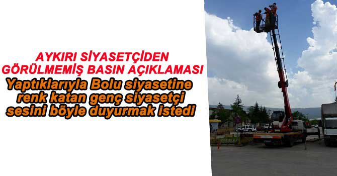 Büyük Birlik Partisi Bolu İl Başkanı Mahmut Alan, basın mensuplarıyla birlikte bir vincin üzerine çıkarak 20 metre yükseklikten Başbakan Ahmet Davutoğlu’na soru sordu.