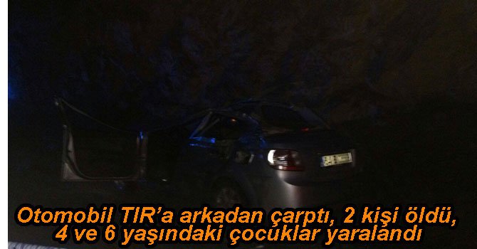 Bolu’nun Mudurnu ilçesinde otomobilin TIR’a çarpmasın sonrasında meydana gelen trafik kazasında 2 kişi hayatını kaybederken, 4 kişi de yaralandı. Kazada yaralananlardan iki tanesi 4 ve 6 yaşında çocuklar olduğu öğrenildi.