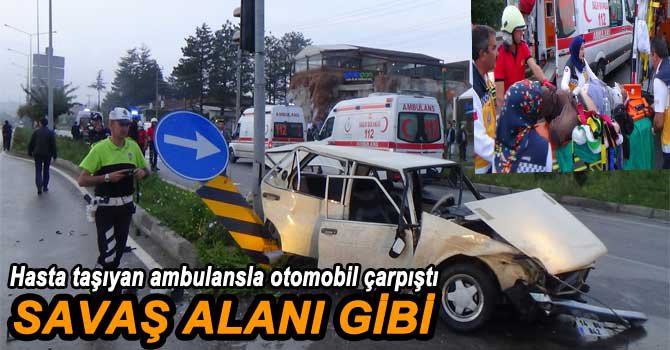 HASTA TAŞIYAN AMBULANSLA OTOMOBİL ÇARPIŞTI