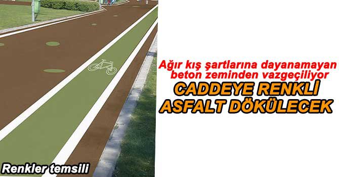 İzzet Baysal Caddesi yeniden şekilleniyor. Caddeye dökülen beton ağır kış şartları nedeniyle hasar görünce, renkli asfalt dökülmesine karar verildi.