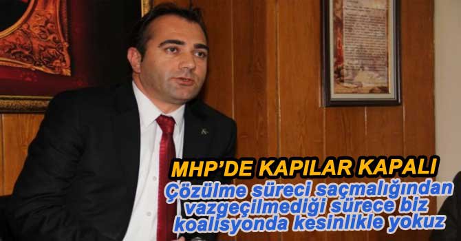 Milliyetçi Hareket Partisi (MHP) Bolu İl Başkanı Mehmet Aydın, AK Parti Bolu Milletvekili Ali Ercoşkun’un MHP ile olası bir koalisyon olabileceği yönündeki açıklamalarına, “Devletimizi zafiyete uğratan bu açılım çözülme saçmalıklarından vazgeçilmediği sürece biz koalisyonlarda yokuz” dedi.