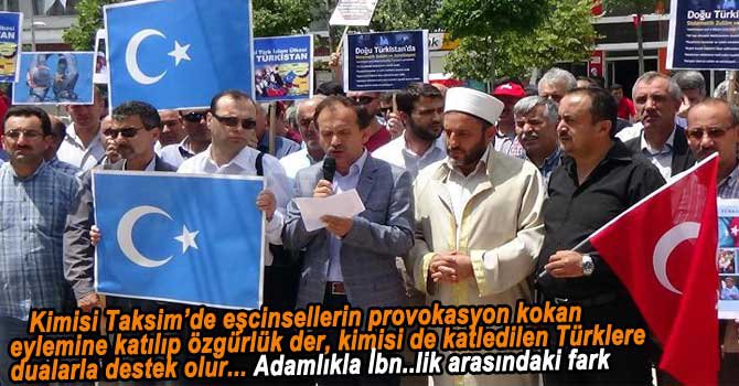 Direnişçilerin değil, o coğrafyada işgali sürdürenlerin terörist olduğunu söyleyen Koçak, “Doğu Türkistan’da da bütün işgale uğrayan Müslüman halklar gibi direnişi ve direnişin öncülüğü Doğu Türkistan İslam Partisi mücahitleri tarafından sürdürülmektedir. En tabii hakları olan işgale karşı direniş, Filistin’de, Irak’ta, Afganistan’da ve Çeçenistan’da olduğu gibi terörizmle suçlanmaktadır. Direnişin ve direnişçilerin terörist değil, bu coğrafyalarda işgali sürdürenlerin terörist olduğunu buradan bütün dünyaya haykırıyoruz. Bizler, dünyanın neresinde olursa olsun dininden, dilinden, ırkından dolayı zulme ve katliama tabi tutulanların, mazlum ve mağdurların yanında; fakat kim olursa olsun bu zulmü işleyen zalimlerin de karşısında olacağız. Bu anlamda Doğu Türkistanlı soydaşlarımızın, dindaşlarımızın bu yoldaki haklı mücadelelerinin yanında olacağımızı vurguluyor ve bütün insanlığı bu vahşeti durdurmaya davet ediyoruz” diye konuştu.