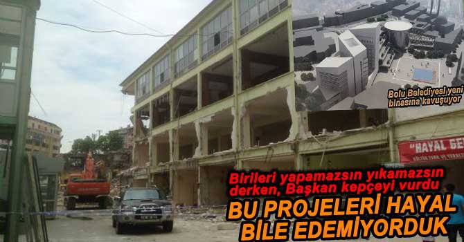 Bolu Belediye Başkanı Alaaddin Yılmaz’ın benim için çok önemli dediği proje için düğmeye basıldı. Bolu Belediyesi’nin arka kısmında bulunan Köroğlu Pasajı ve belediyeyle bitişik olan binanın yıkımına başlanıldı. Bolu Belediyesi, boşaltılan arsaya ‘Bolu Kent Merkezi, Belediye Meydanı ve Çevresi Kentsel Tasarım Projesi’nde yer alan bir bina yapmayı düşünüyor. Yap-İşlet-Devret Modeliyle bu yıl yapımına başlanması planlanan binada başkanlık makamı, Başkan Yardımcıları, İmar, Mali İşler, Zabıta ve Bol Hizmet Noktası’nın yer alacağı belirtiliyor.