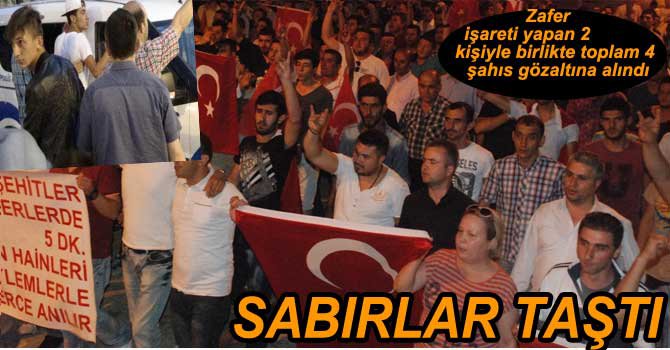 Bolu’da yaklaşık 300 kişilik grup son günlerde yaşanan terör eylemlerini protesto etti. Protesto sırasında provokasyon yapmak isteyerek zafer işareti yapan iki kişi, yakını ve eylem alanında durumundan şüphelenilen bir kişi gözaltına alındı.