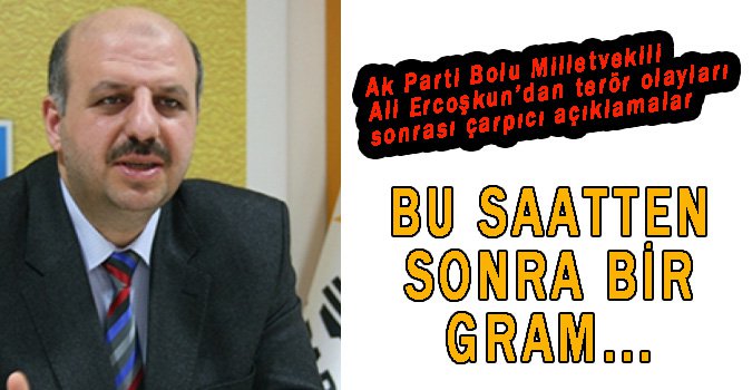 Ak Parti Bolu Milletvekili Ali Ercoşkun, parti binasında düzenlediği basın toplantısında son günlerde yaşanan terör saldırılarına ilişkin çarpıcı açıklamalar yaptı. Devletin bu saatten sonra geri adım atmayacağını söyleyen Ercoşkun, “Bir gram geri çekilme söz konusu olamaz. Herkes ayağını buna göre denk almalı” dedi.