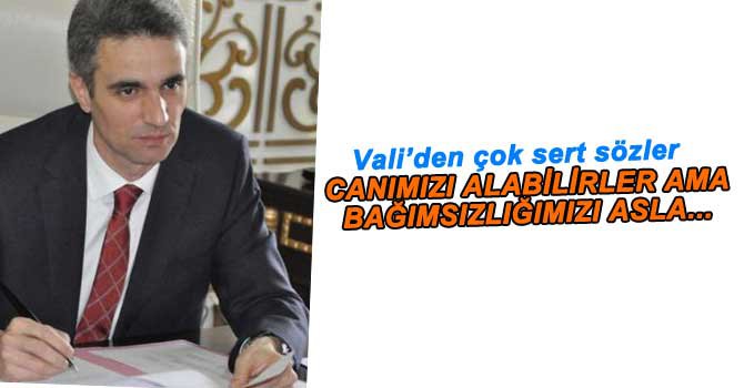“İNSAN ÖLDÜRMEKTEN CANA KIYMAKTAN BAŞKA HİÇBİR MARİFETİ OLMAYAN” Vali Baruş sözlerine şöyle devam etti: “Bizim birlik ruhumuz sadece Anadolu'da yaşayan insanlardan ibaret değil. Biz öyle bir coğrafyada bulunuyoruz ki yüzyıllar boyunca bıraktığımız izler hala o coğrafyada yaşayan insanların torunlarının kalbinde ruhunda devam ediyor. Bugün belki bizim milletimizin birliğine kast edenler bizi üzüntüye sevk ettiklerini düşünerek bunu kar sayabilirler ama biz hiçbir zaman ayrımcı, ayrılıkçı sadece insan öldürmekten cana kıymaktan başka hiçbir marifeti olmayan cani ruhlulara asla teslim olmadık, hiçbir zaman da olmayacağız.”