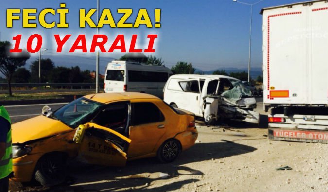 Bolu'da yan yoldan D-100 Karayolu'na çıkan ticari taksi ile üniversitede çalışan taşeron işçileri taşıyan servis minibüsünün çarpışması sonucu 10 işçi yaralandı. Olay yerine gelen yaralıların yakınları ambulansta hastalarını aradı. Edinilen bilgiye göre olay, Paşaköy Kavşağı çıkışından 100 metre sonra meydana geldi. Metin Kosifoğlu idaresindeki 14 T 0208 plakalı ticari taksi, Paşaköy altgeçitinden İstanbul istikametine doğru çıkış yaptı. Bu sırada D-100 Karayolu'nda seyreden Lokman Aksoy yönetimindeki 14 AT 635 plakalı servis minibüsü, aynı istikamete çıkış yapan ticari taksi ile çarpıştı. Kaza sonrası yoldan çıkan iki araçta büyük çapta maddi hasar meydana gelirken, olay yerinde can pazarı yaşandı. Minibüste bulunan işçiler Masum Aksoy, Suat Aksoy, Kenan Aksoy, Ünal Aksoy, Feyzullah Aksoy, Oktay Örce, Zeki Örce ve Tayfun Örce yaralandı. İki aracın sürücüsü ile bir işçi araçlarda sıkıştı. Kazazedeler uzun uğraşlar sonucu sıkıştıkları yerden kurtarıldı.