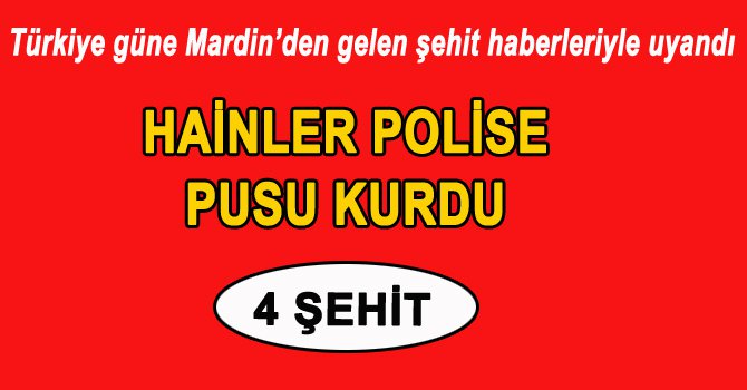 Mardin'de polis aracının geçişi sırasında teröristler tarafından yola döşenen patlayıcının infilak ettirilmesi sonucu biri emniyet amiri 4 polis şehit oldu.