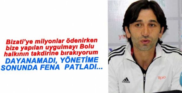 “Şimdiye kadar bu yönde hiçbir açıklama yapmamış olmama rağmen Denizlispor maçından sonra tarafımıza ödenmesi gereken primlerin altyapıya ödendiği noktasında yapılan beyan neticesinde açıklama yapma gereği duydum. Bu aşamada belirtmek isterim ki zaten kulüpler altyapıların tüm ihtiyaçlarını karşılamak zorundadır. Dolayısıyla yapılan açıklama Boluspor Kulübünün tarafımıza prim borcu olduğunun üstü örtülü kabulü anlamına gelmektedir. Öyleyse Altyapıya bize ait primlerin verilmesi Boluspor’un ödemesi değil, bizim bağışımızdır ki altyapıya yaptığımız bu bağışın sonuna kadar helal ediyoruz. Ancak sezonu tamamlamadan ayrılan Bizati Hoca’ya sırf sözleşme gereği milyonlar ödenirken, bize yapılan uygulamayı Boluspor camiasının ve Bolu halkının takdirine bırakıyorum.”