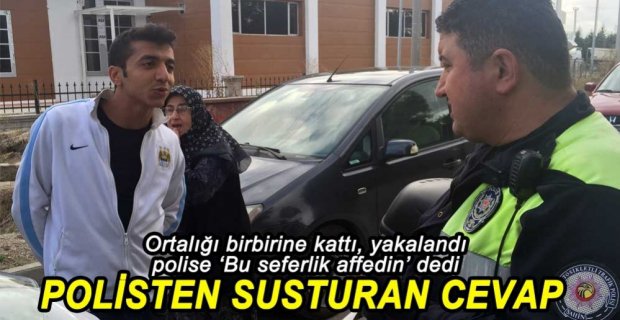 Edinilen bilgiye göre, 17 LA 881 plakalı otomobilin sürücüsü Yasin Çelik, tehlikeli araç kullandığı ihbarı üzerine polis ekipleri tarafından Karaçayır Mahallesi’nde durdurulmak istendi. Dur ihtarına uhmayan sürücü kaçmaya başlayınca polis ekipleri peşine takıldı. Spin atarak vatandaşları tehlikeye düşüren sürücüyü gören Düzce Emniyet Müdürlüğü’nde görevli polis memuru Erdal Üzen, sürücünün peşine düşerek Karaçayır Mahallesi’nde bulunan Kapalı Spor Salonu’nun önünde durdurdu. Olay yerine trafik polisi sürücü Yasin Çelik’in ehliyet sorgulamasını yaparken, Çelik, “Devlete paramız feda olsun. Ama bu seferlik affedin” dedi. Polis memuru ise, “Affetmek Allah’a mahsustur” sözleriyle sürücüye cevap verdi. Sürücüye trafiği tehlikeye düşürmek ve dur ihtarına uymamak suçundan ceza kesildi.