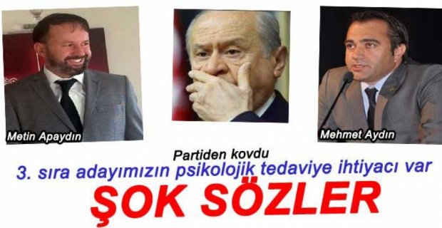MHP Bolu İl Başkanı Mehmet Aydın, “3. sıra adayımız Metin Apaydın’ın psikolojik tedaviye ihtiyacı var. Ruh hali MHP’yi temsil etmeyi kaldıramadı” dedi. Metin Apaydın seçimlerden sonra sosyal medyada MHP Lideri Devlet Bahçeli aleyhinde paylaşımlar yapmıştı.