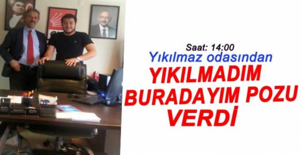 CHP İl Başkanlığı’na gelen Hüseyin Yıkılmaz, odasına girerek Merkez Gençlik Kolları Başkanı Tahsin Mert Karagöz’le fotoğraf çektirdi. Yıkılmaz’ın keyifli hali gözlerden kaçmadı. Odasına giren Yıkılmaz, yanına gelen gençlere, “Merak etmeyin süreç işliyor. Ortada hukuksuz bir durum var. Kısa süre sonra hukuksuzluk ortadan kalkacak. Merkez İlçe Kongresi belirlenen tarihte yapılacak” dedi.