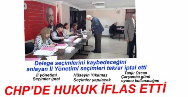 CHP’de bugün yapılan ve çoğunluk sağlanamadığı için Çarşamba gününe ertelenen delege seçimleri CHP İl Yönetimi’nden yapılan açıklamayla ilerleyen tarihe ertelenmek istiyor. CHP Merkez İlçe Başkanı Hüseyin Yıkılmaz ise seçimlerin yapılacağını ifade etti. Milletvekili Tanju Özcan ise, Çarşamba günü gidip oyunu kullanacağını söyledi.