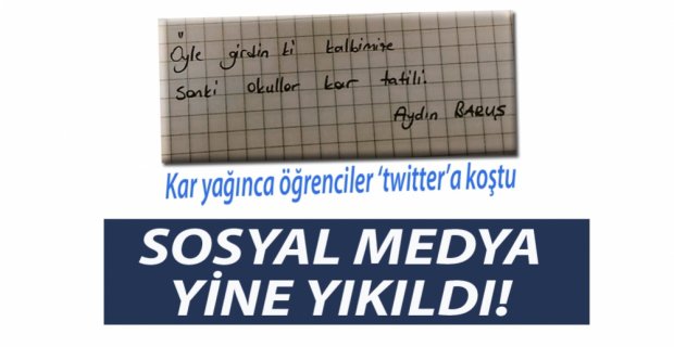 Twitter'ın başına oturan öğrenciler, okullarındaki tahtalara birbirinden renkli resimler ve yazılar yazdı. Twitter hesabından öğrencilere seslenen Vali, "Şimdi ise şiir yazıyoruz, evet... Herkes göstersin marifetini! Bu sefer sadece kafiyeli ve güzel şiirleri paylaşacağım" mesajını paylaştı. Ancak öğrencileri ilgilendiren bir şey vardı. Bolu Valisi Aydın Baruş twitter hesabı kullanmıyor. Yani, mesajlar sahte hesaptan gönderiliyor. Öğrencilere uyarı, kar yağışının etkili olduüu dönemlerde okulların tatil edilip edilmeyeceği bilgisine Bolu Valiliği'nin www.bolu.gov.tr adresinden ulaşabilirsiniz.