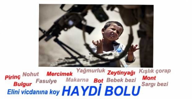 Bolu İHH Suriye’deki Bayırbucak Türkmenlerine yardım etmek için 3 TIR dolusu malzeme temin ediyor. Gıda ve giysi yardımlarından oluşan yardım TIR’ları 4 Aralık Cuma Günü sabah 09:00’da Hükümet Meydanı’ndan hareket edecek.