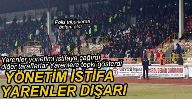 Denizlispor maçında başlayan yönetim taraftar gerginliği farklı bir boyu kazandı. Yeni Malatyaspor maçı oynanırken, Yarenler ve Cadde 14 taraftar grubu, “Yönetim istifa’ diye bağırdı, tribünde buluna diğer taraftarlar da “Yarenler dışarı” diye bağırınca ortalık karıştı.