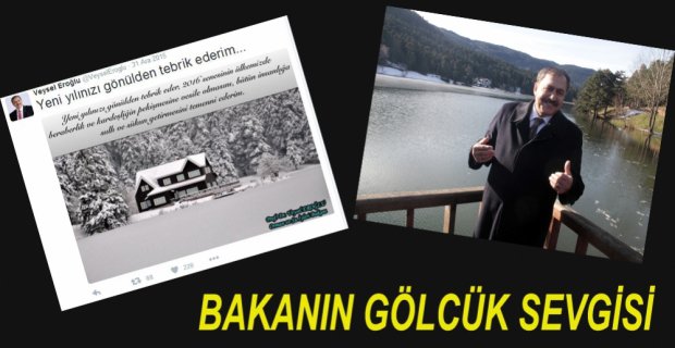 Orman ve Su İşleri Bakanı Veysel Eroğlu, resmi twitter hesabından yaptığı yılbaşı tebriğinde ilimizin eşsiz doğa güzelliklerinden olan Gölcük’ün fotoğrafını kullandı. Geçtiğimiz günlerde ilimizi ziyaret eden ve Bolu’ya geldiğinde ilk olarak Gölcük’ü ziyaret eden Eroğlu, Gölcük fotoğrafı eşliğinde yaptığı kutlamada, “Yeni yılınızı tebrik eder, 2016 senesinin ülkemizde beraberlik ve kardeşliğin pekişmesine vesile olmasını, bütün insanlığa sulh ve sükun getirmesini temenni ederim.” ifadelerini kullandı.