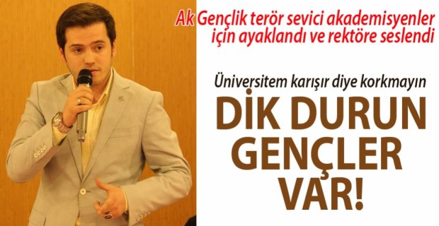 Rektör Hayri Coşkun’a, ‘Bu vatanın dik ve omurgalı insanlara ihtiyacı var’ diye seslenen genç siyasetçi, “Bakın sizi örnek alan birçok insan için, toplayın ekibinizi çıkın ve 'benim rektör olduğum üniversite de bunlar olmaz' deyin. Açıkça yapılan terör bildirgesini ifade özgürlüğü ve demokratik görmeyin” dedi.