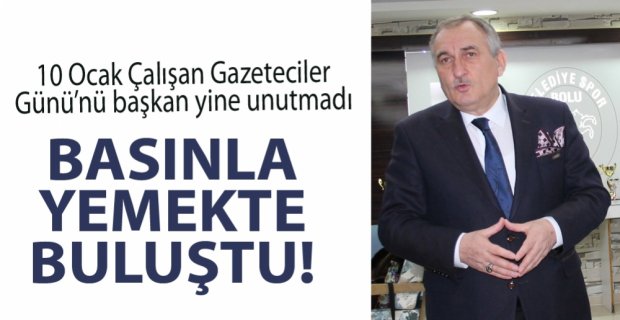 Bolu Belediye Başkanı Alaaddin Yılmaz, 10 Ocak Çalışan Gazeteciler Günü münasebetiyle basın mensuplarına yemek verdi. Bolu Belediye Spor Kulübü Sağlıklı Yaşam Merkezi'nde (BOBES) düzenlenen yemeğe Belediye Başkanı Alaaddin Yılmaz, Belediye Başkan Yardımcısı Emine Davarcıoğlu, Bolu Gazeteciler Cemiyeti Başkanı Bülent Velioğlu, yönetim kurulu üyeleri ve basın mensupları katıldı.