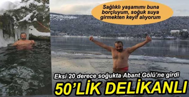 Ülke genelinde kar yağışı ve dondurucu soğuklar etkili olurken, Bolu’da Abant Tabiat Parkı yolundaki Yeşil Ev Restaurant Masal Evleri isimli işyerinin sahibi Sedat Abak, eksi 20 derece soğukta şort giyerek Abant Gölü’ne girdi. Göl üzerindeki buzları kıran Abak, işyerinin hemen önünden geçen Abant deresine de sık sık girerek sağlıklı yaşam sürdüğünü ifade etti.