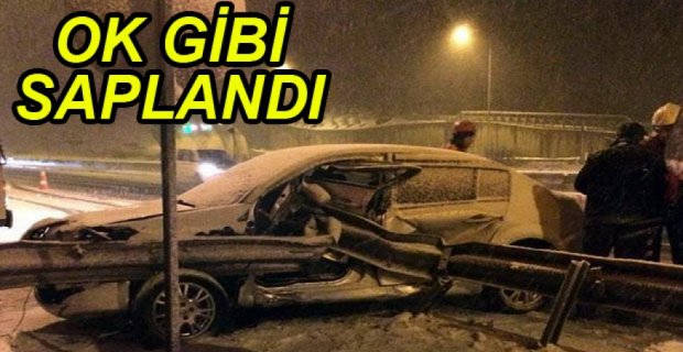 Edinilen bilgiye göre, Kaza akşam saatlerinde meydana geldi. İstanbul’dan Ankara istikametine giden V.Ç. idaresindeki 34 VY plakalı otomobil, Bolu Dağı Tüneli çıkışında kar nedeniyle kayarak yol kenarında ki çelik bariyerlere çarptı. Çarpmanın etkisiyle çelik bariyer adeta bir bıçak gibi sürücü mahalline saplandı. Sürücü kazadan şans eseri yara almadan kurtuldu. Polis ekipleri kazayla ilgili inceleme başlattı.