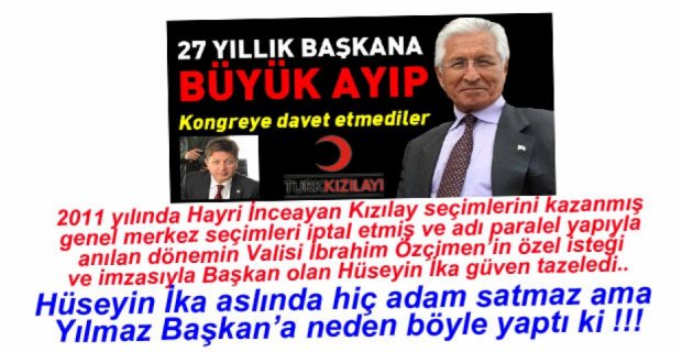Yıllar önce Yılmaz Özarslan tarafından Kızılay yönetimine alınan Hüseyin İka’nın Başkanlığını yaptığı Kızılay Bolu Şubesi Kongresi hafta sonu kongreye gitti. Sessiz sedasız yapılan kongreye bazı üyelere haber verilmediği, yerel basının bir kısmının davet edilip bir kısmanın davet edilmediği, yönetime kimin girip girmediği bile belli olmayan kongrede en büyük ayıp eski başkanlardan Yılmaz Özarslan’a yapıldı.