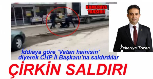 Edinilen bilgiye göre, CHP Düzce İl Başkanı Zekeriya Tozan Şıralık Mahallesi’nde bulunan bir market önünde henüz kimliği belirlenemeyen 2 kişinin saldırıya uğradı. İki kişi tarafından darp edilen Tozan'ın saldırı anı cep telefonuyla kaydedildi. Tozan, saldırının ardından Düzce Emniyet Müdürlüğüne giderek şikayetçi oldu. Polis olayla ilgili inceleme başlattı.