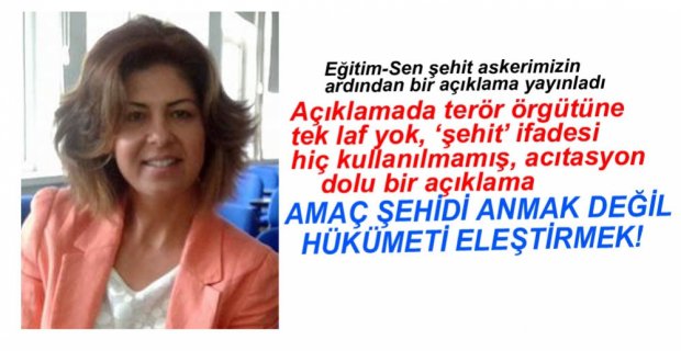 Eğitim Sen açıklama yapmaz vay efendim bak hiç açıklama yapmıyor dersiniz yapar bak şöyle demiş böyle demiş. Erdoğan için savaşmak şehitlik mi oluyor . Şehitlik din için savaşırsan olmuyor mu?