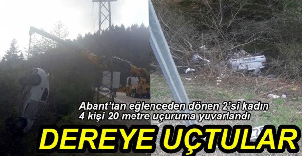 Edinilen bilgiye göre, olay gece saatlerinde meydana geldi. İçinde 4 kişinin bulunduğu A.S. yönetimindeki 34 KU 9226 plakalı otomobil Abant dönüşünde sürücünün direksiyon hakimiyetini kaybetmesi sonrasında 20 metrelik uçuruma yuvarlanarak dereye uçtu. Derede ters dönen otomobil içinde sıkışan 4 kişi cep telefonu ile yardım istediler. Olay yerine gelen 112 ekipleri yaralılara ilk müdahaleyi araç içinde yaparken araç uçurumdan kurtarıcı ile çıkartıldı. Kazada sürücü A.S., otomobilde bulunan N.E. isimli kadın ve adı öğrenilemeyen 2 kişi yaralandı. Yaralılar İzzet Baysal Devlet Hastanesi Köroğlu Ünitesi’nde tedavi altına alındılar. Jandarma ekipleri kazayla ilgili imcelem başlattı.
