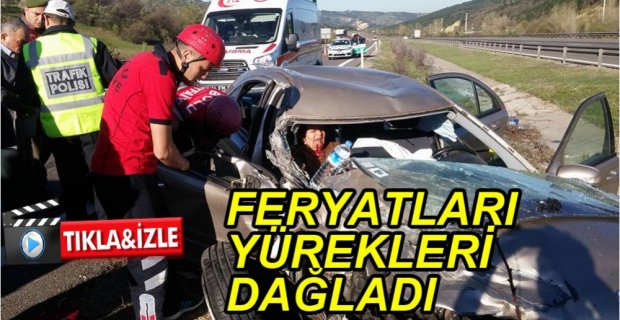 Edinilen bilgiye göre, kaza TEM Otoyolu’nun Köroğlu Park mevkiinde meydana geldi. İstanbul’da Ankara istikametine giden Arif Altınok idaresindeki EB 119 DH yabancı plakalı otomobil, önünde giden Ahmet Ünsal’ın kullandığı 06 SF 245 plakalı tıra arkadan çarptı. Kazada otomobil sürücüsü Arif Altınok yanındaki Meryem Altınok yaralandı. Araçta sıkışan Meryem Altınok Bolu Belediyesi İtfaiye Müdürlüğü’ne bağlı ekipler tarafından kurtarılırken, kadının feryatları yürekleri dağladı.