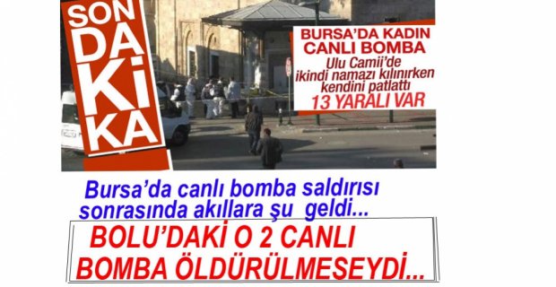 Bursa'nın kent merkezinde bulunan tarihi Ulu Camii yanında 30 yaşlarındaki kadın canlı bomba tarafından canlı bomba saldırısı yapıldı. Bolu’nun Paşaköy Mahallesin'de 20 gün önce canlı bomba olduğu belirlenen 2 teröristin öldürülmesinin ardından önceki gece de yine Paşaköy Mahallesi'sinde ikiz plakalı bir şüpheli araç fünye ile patlatılmıştı. Bolu polisi de kentte güvenlik önlemlerini en üst seviyeye çıkarttı.